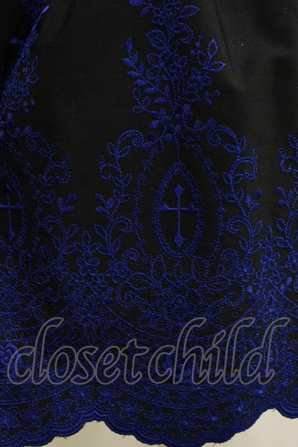 Moi-meme-Moitie / Rose Garden刺繍ジャンパースカート 9号 黒×青 H-26-02-10-001-MO-OP-KB-ZH