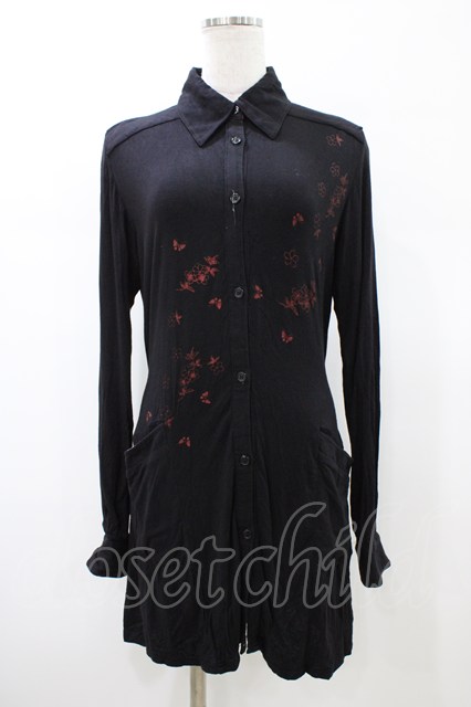 gouk / 和柄切替カットソーロングシャツ ブラック H-26-02-08-1049-GO-BL-KB-ZH