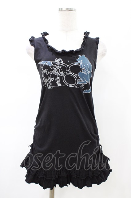 PEACE NOW / フリルギャザーロングタンク ブラック H-26-02-08-1045-PU-TO-KB-ZH