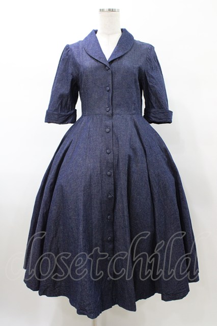 Perla nell' ostrica / 半袖ショールカラージャケットワンピース ブルー H-26-02-08-1033-EL-OP-KB-ZH