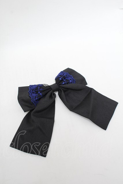 Moi-meme-Moitie / Rose fanceレースリボンクリップ 黒x青 S-26-02-05-009-MO-AC-AS-ZS