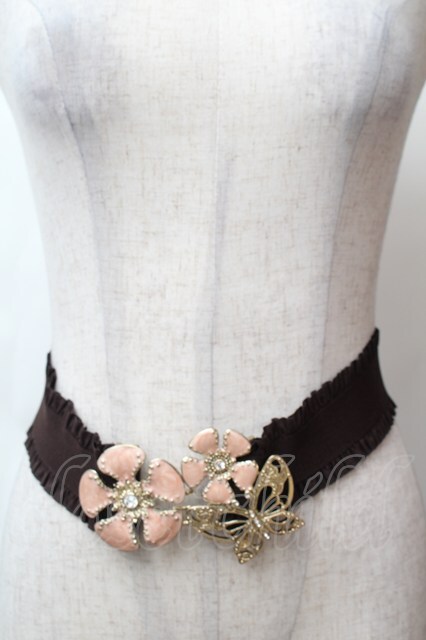 axes femme / お花×蝶モチーフゴムベルト ブラウンxピンク S-26-02-05-020-AX-ZA-AS-ZS