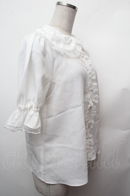 axes femme kawaii / プチリボン半袖ブラウス 白 S-26-02-05-023-AX-BL-AS-ZS