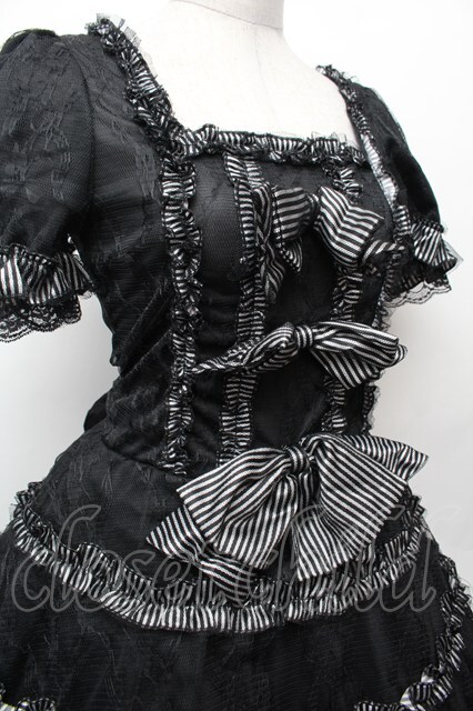 Drug Honey / レースフリルストライプワンピース 黒x白 S-26-02-05-035-PU-OP-AS-ZS [戻る]