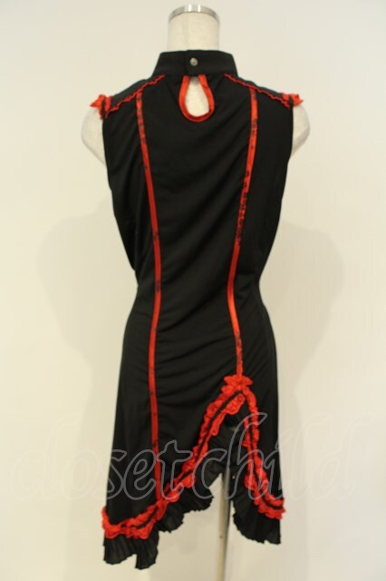 Ozz oneste / 華刺しゅうチャイナノースリーブワンピース ブラック×レッド O-26-02-06-042-OO-OP-OW-OS