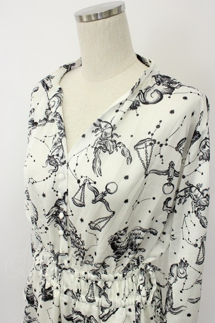 axes femme NOSTALGIE / 星座柄スキッパーワンピース M ホワイト T-26-02-08-002-AX-OP-SA-ZT