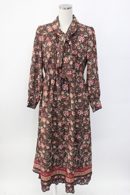 axes femme NOSTALGIE / パネル柄ボウタイ付きワンピース ブラウン T-26-02-08-016-AX-OP-SA-ZT