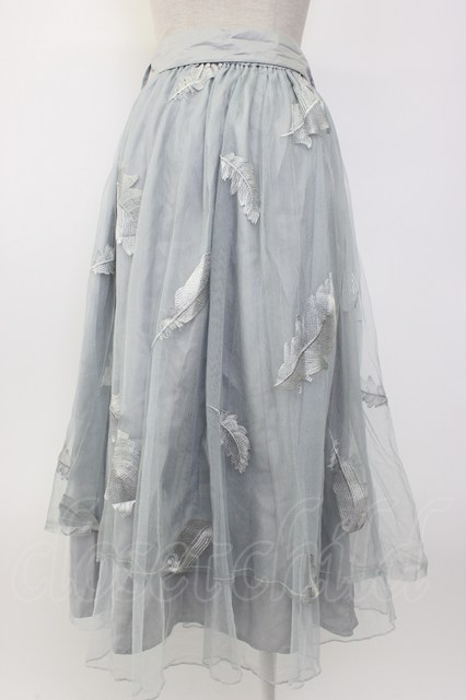 axes femme / フェザー刺繍チュールスカート サックス T-26-02-08-028-AX-SK-SA-ZT