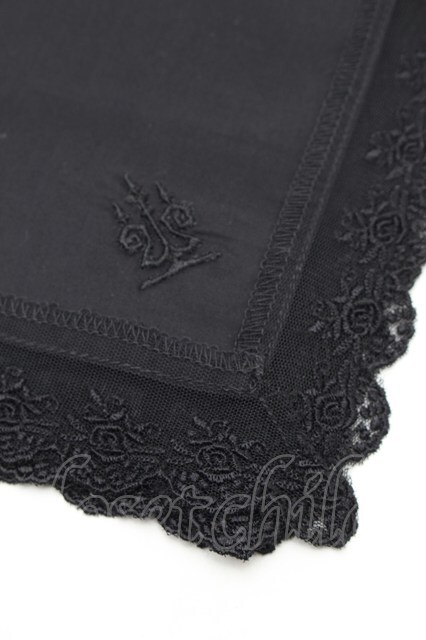 Moi-meme-Moitie / 燭台刺繍ハンカチ 黒 S-26-02-06-002-MO-ZA-HR-ZS