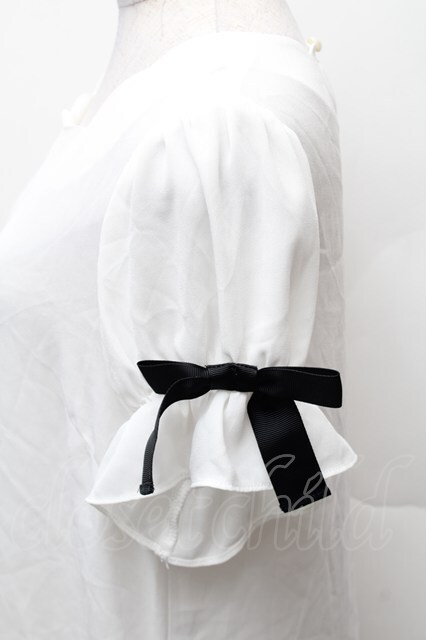Ank Rouge / スカラップ半袖リボンブラウス 白 S-26-02-06-019-CA-BL-HR-ZS