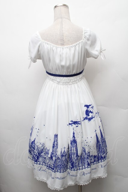 Moi-meme-Moitie / サイレントムーンワンピース(ミニ丈) 白x青 S-26-02-06-044-MO-OP-HR-ZS
