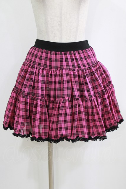 ALGONQUINS / シフォンチェックスカート F ピンク×黒 H-26-02-11-023-AL-SK-AK-ZH