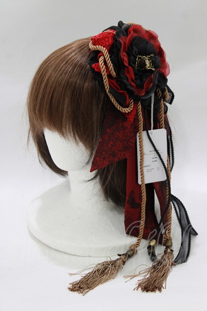 Ozz On / コサージュリボンクリップ 黒×赤 H-26-02-11-070-OO-AC-KB-ZH