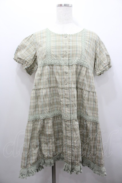 PINK HOUSE / 胸下切替チェック柄半袖チュニック グリーン I-26-02-06-083-LO-BL-SA-ZI