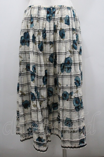 INGEBORG / チェック&花柄スカート 13号 アイボリー×ブラック×ブルー I-26-02-06-087-LO-SK-SA-ZI [戻る]