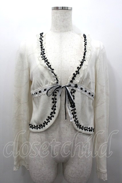 FRILL / はしごレースリボンカーディガン 白X黒 I-26-02-06-028-HN-TO-SA-ZI