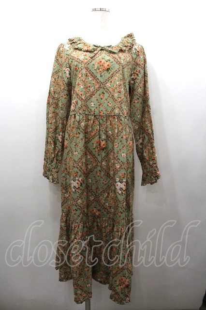 PINK HOUSE / 薔薇格子プリントミディワンピース グリーン I-26-02-06-075-LO-OP-HR-ZI
