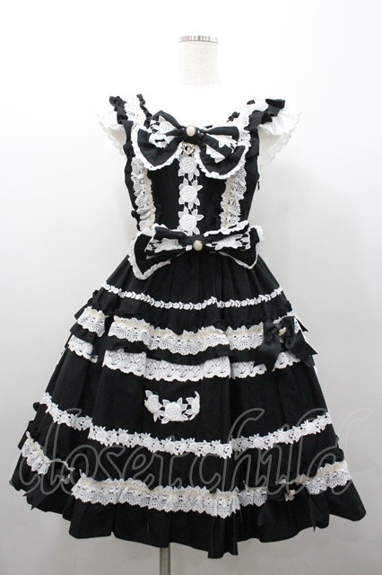 BABY,THE STARS SHINE BRIGHT / Rose Lace Rococoジャンパースカート 黒X白 I-26-02-06-044-BA-OP-SA-ZI