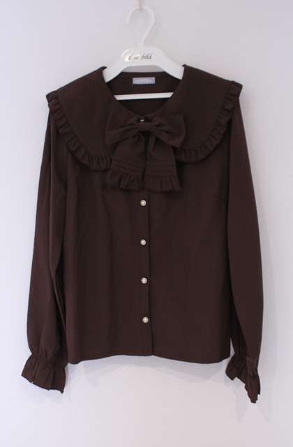 axes femme kawaii / ピンタックリボン丸襟ブラウス M チャ O-26-02-07-1016-AX-BL-YM-OS