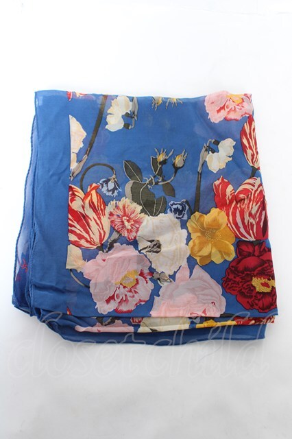 INGEBORG / ヴィンテージフラワー柄大判ストール 青 Y-26-02-09-027-LO-ZA-SZ-ZY