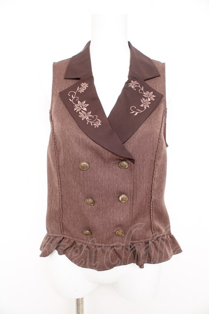 axes femme / 花刺繍レースアップベスト M 茶 Y-26-02-09-056-AX-TO-SZ-ZY
