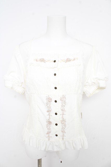 OZZ ANGELO / クロス&ローズ刺繍パフスリーブブラウス 白 Y-26-02-09-104-OO-BL-SZ-ZY