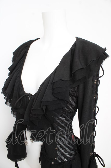 Ozz On / レースアップ異素材フリルカーディガン 黒 Y-26-02-09-108-OO-TO-SZ-ZY [戻る]