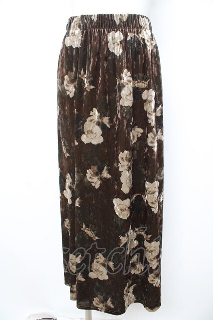 axes femme / ベロア花柄スカート M 茶 Y-26-02-09-159-AX-SK-SZ-ZY
