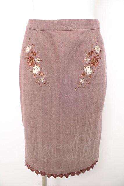 axes femme / 刺繍入りタイトスカート M ワイン Y-26-02-09-167-AX-SK-SZ-ZY