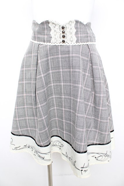 axes femme POETIQUE / 音符柄チェックスカート M グレー Y-26-02-09-168-AX-SK-SZ-ZY [戻る]