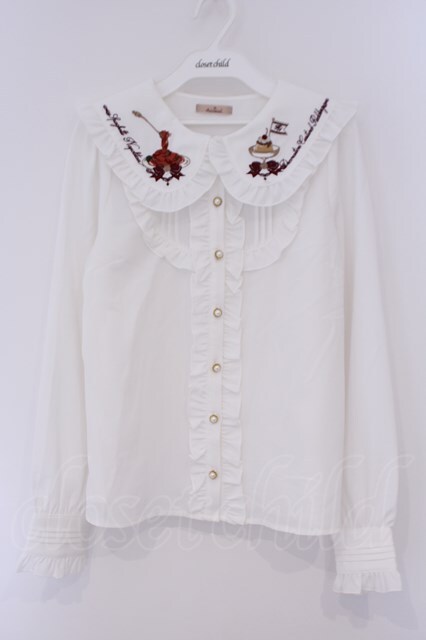 Amavel / 喫茶アマベルのランチセットブラウス シロ×ボルドー O-26-02-09-020-CA-BL-IG-OS