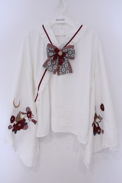 Amavel / 月夜の狐と寒椿 和風ブラウス シロ×ワイン O-26-02-09-019-CA-BL-IG-OS [戻る]