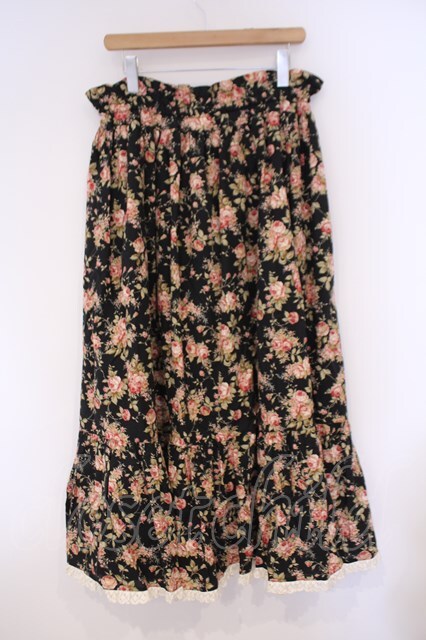 metamorphose / 薔薇柄ロングスカート クロ O-26-02-09-040-ME-SK-OW-OS