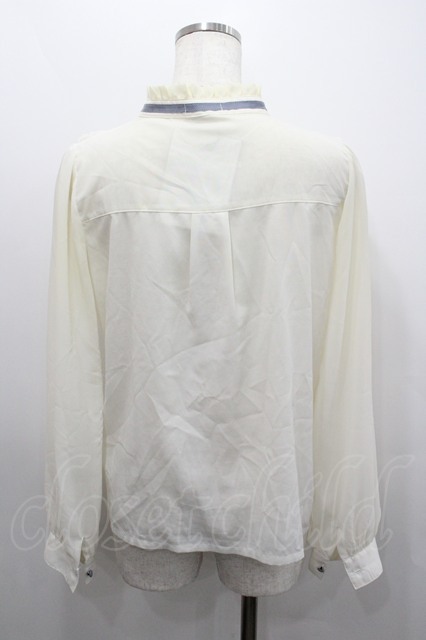 axes femme / フロントレースハイネックブラウス 生成りX青 I-26-02-08-007-AX-BL-SA-ZI