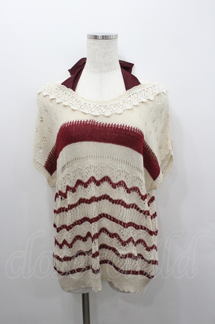 axes femme / ボーダー半袖ニットトップス アイボリーX赤 I-26-02-08-014-AX-TO-SA-ZI