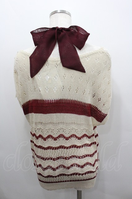 axes femme / ボーダー半袖ニットトップス アイボリーX赤 I-26-02-08-014-AX-TO-SA-ZI [戻る]