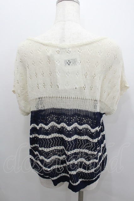 axes femme / かぎ編みニットトップス オフxネイビー I-26-02-08-015-AX-TO-HR-ZI