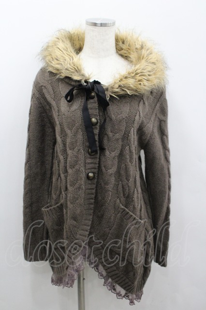 axes femme / ファー襟ロングニットカーディガン ブラウン I-26-02-08-038-AX-TO-SA-ZI [戻る]