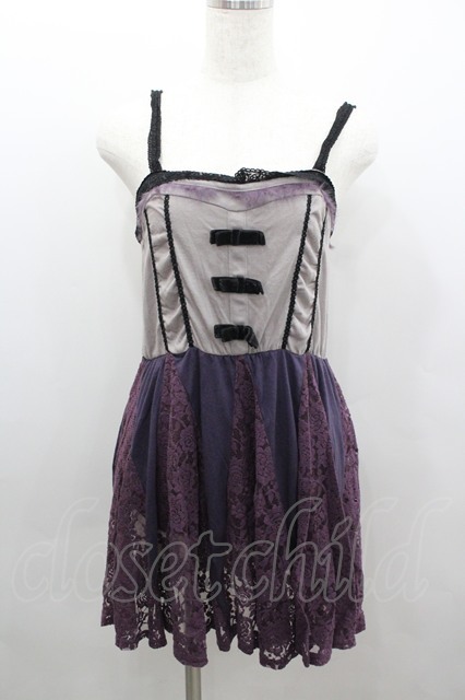 axes femme / レース切り替えキャミチュニック グレーXパープル I-26-02-08-048-AX-TO-SA-ZI