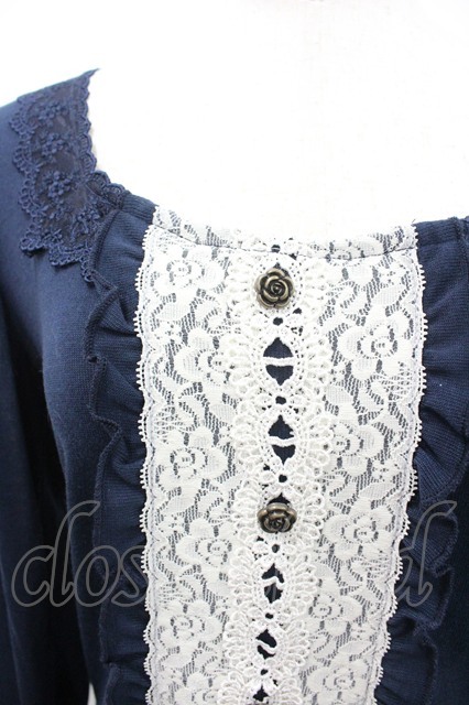 axes femme / フロントレースデザイントップス ネイビーX白 I-26-02-08-051-AX-TO-SA-ZI