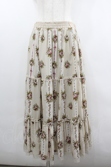 axes femme / ストライプ花柄ロングスカート 生成り I-26-02-08-095-AX-SK-SA-ZI