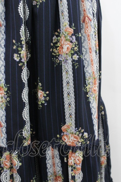 axes femme / ストライプ花柄ロングスカート 黒 I-26-02-08-109-AX-SK-SA-ZI