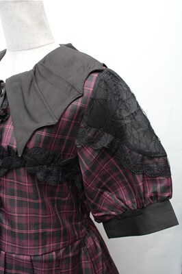 DearMyLove / デビル襟クロスフリルワンピース 黒xピンク S-26-02-08-035-EL-OP-HR-ZS