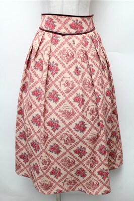 an another angelus / ヴィンテージローズタイツ柄タックスカート ベージュxレッド S-26-02-08-055-CA-SK-HR-ZS