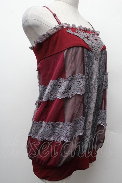 OZZ ANGELO / チュールレイヤード風キャミソール ワインxグレー S-26-02-09-011-OO-TO-HR-ZS
