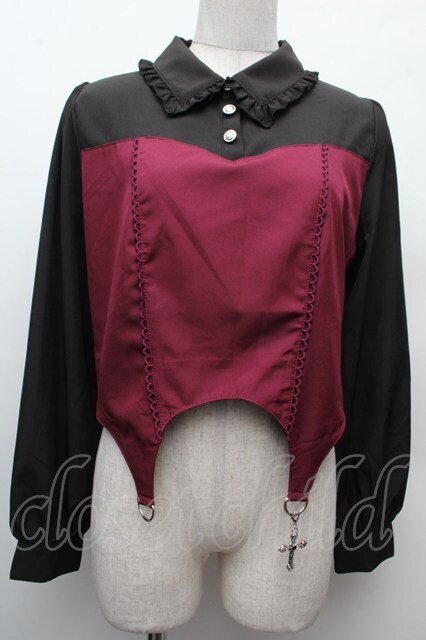 NIBBLE POISON / ガータービスチェデザインブラウス 黒xワイン S-26-02-09-012-0-BL-HR-ZS