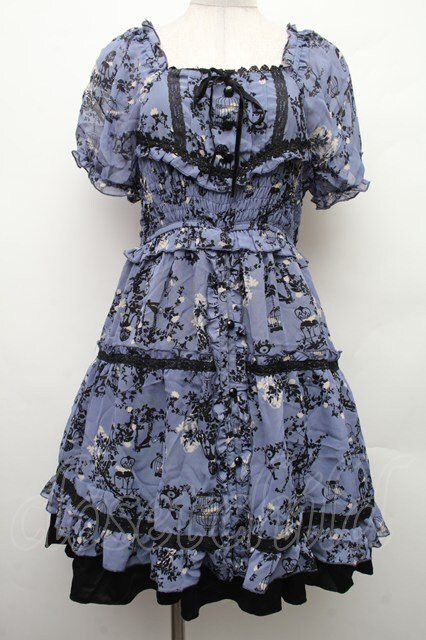 axes femme / バードケージ柄シフォンシャーリングワンピース ブルー S-26-02-09-036-AX-OP-HR-ZS