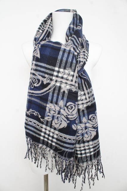 axes femme / チェック×バラ柄JQストール 紺 Y-26-02-11-005-AX-ZA-SZ-ZY