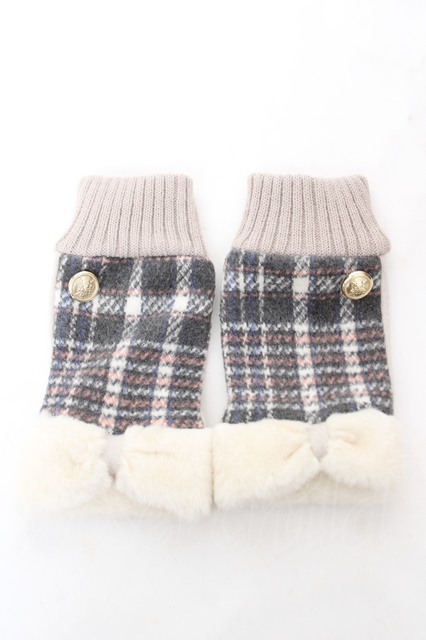axes femme / リボンファー使いチェック手袋 黒 Y-26-02-11-009-AX-ZA-SZ-ZY