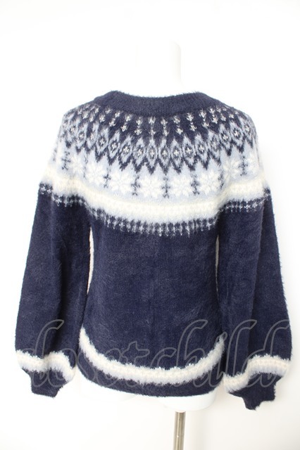 axes femme / 求心柄フェザーニットプルオーバー M 紺 Y-26-02-11-029-AX-TO-SZ-ZY